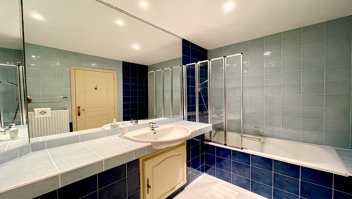 bain et toilettes privative de 6m2. Une jolie vue avec ses fenêtres fleuries donnant sur la place de la Mirpe.